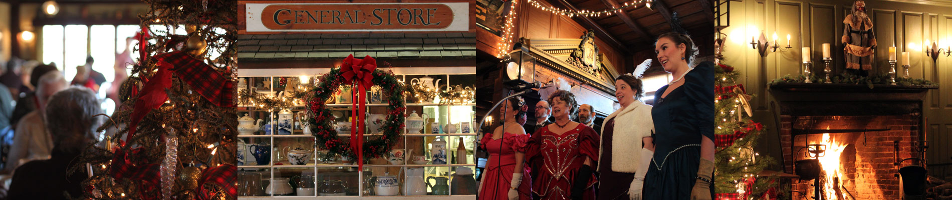Salem Cross Inn during the winter months is a captivating scene -- The decorations throughout the building are a joy to see. Feel free to wander through our rooms while you're here. Next, let's celebrate in true holiday fashion. First, enjoy a play based on Dylan Thomas' "A Child's Christmas in Wales," performed by the animated and lively Cornely Production performers, dressed in 19th century costumes and ready to entertain you! Enjoy them singing over 20 Christmas carols. Since singing Christmas carols often brings out the spirit of joy in almost everyone, we encourage you to sing along with them and rekindle memories of Christmases past while making memories of the Christmas present. Throughout the event, the actors will circulate around the room so everyone feels like a part of the festivities. Bring your Christmas spirit, your sense of humor, and even your camera!